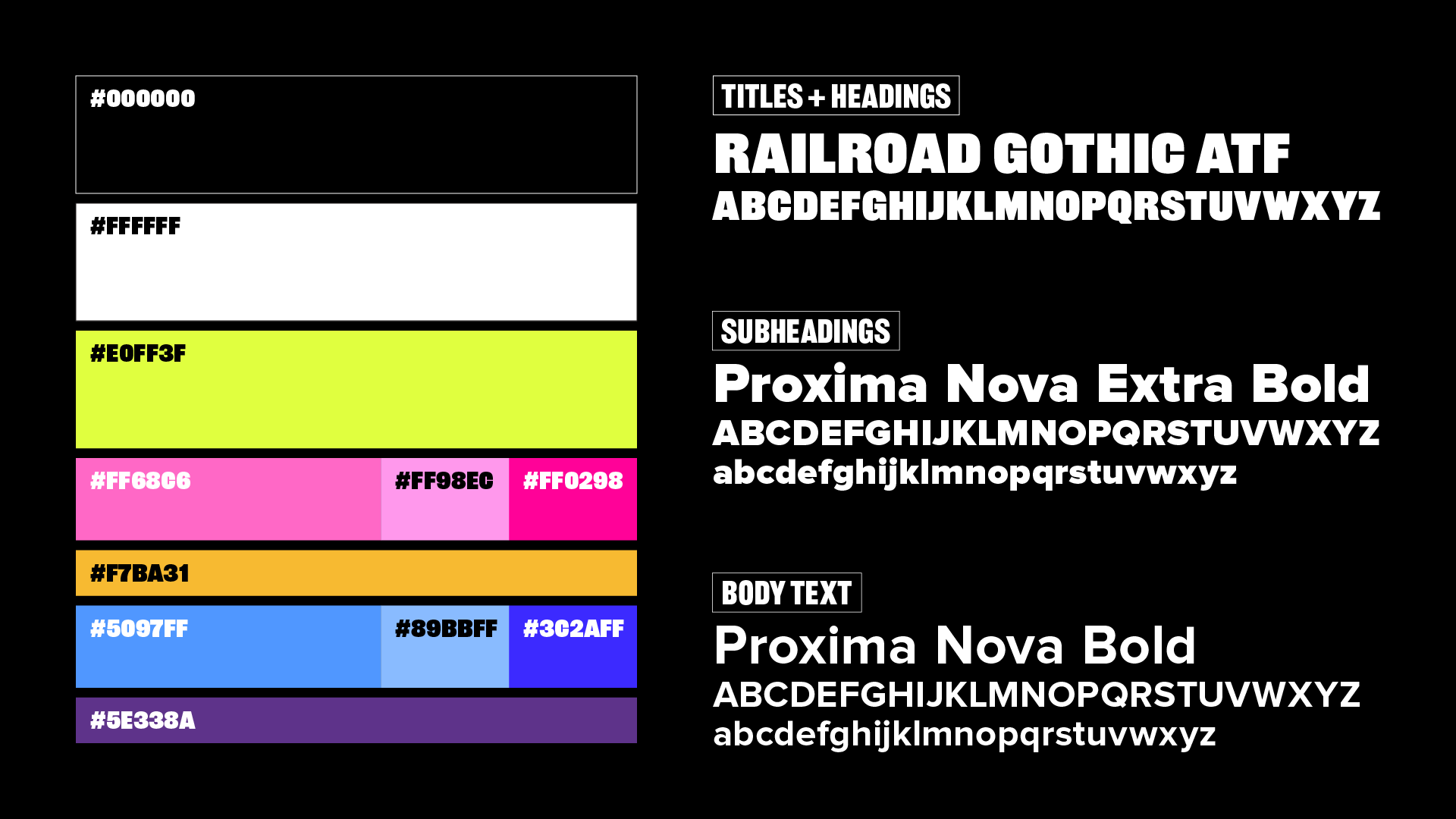 I developed a bold wordmark and a versatile high-contrast rainbow palette that pops against the vibrant celebrity photography that is a prominent feature of the brand.