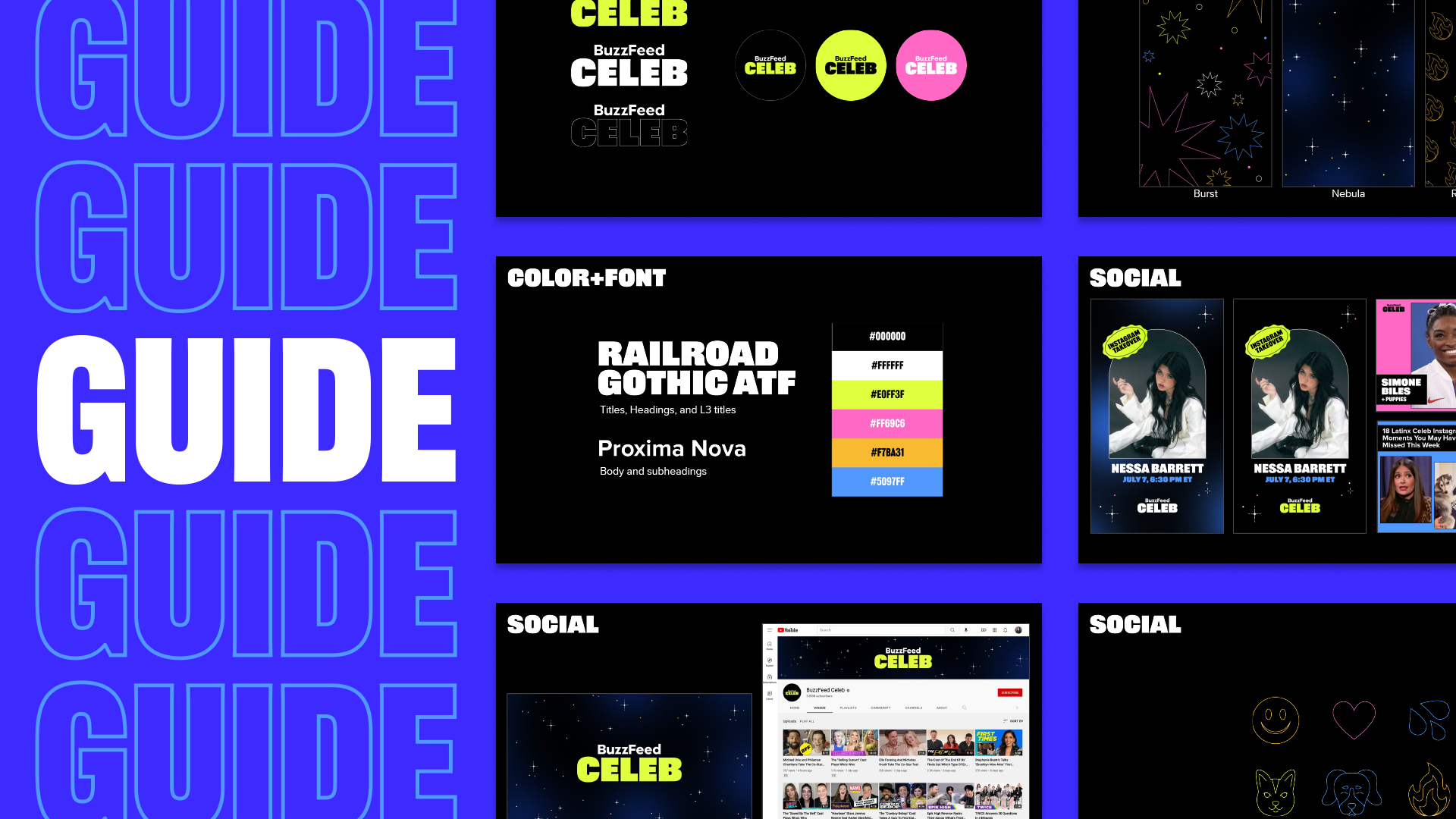 I designed the full visual identity and several show graphics packages for celebrity and entertainment news channel, BuzzFeed Celeb. I consulted with executive producer, Lindsay Webster, throughout the rebrand.